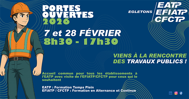 Pourvoyeur de jeunes talents pour les Travaux Publics depuis 1943, l'École d’Application aux métiers des Travaux Publics (EATP) forme des professionnels performants et immédiatement opérationnels.Notre école accueille chaque année quelque 600 élèves dans ses cursus en CAP, Bac Pro et BTS, tous spécialisés dans les Travaux Publics.